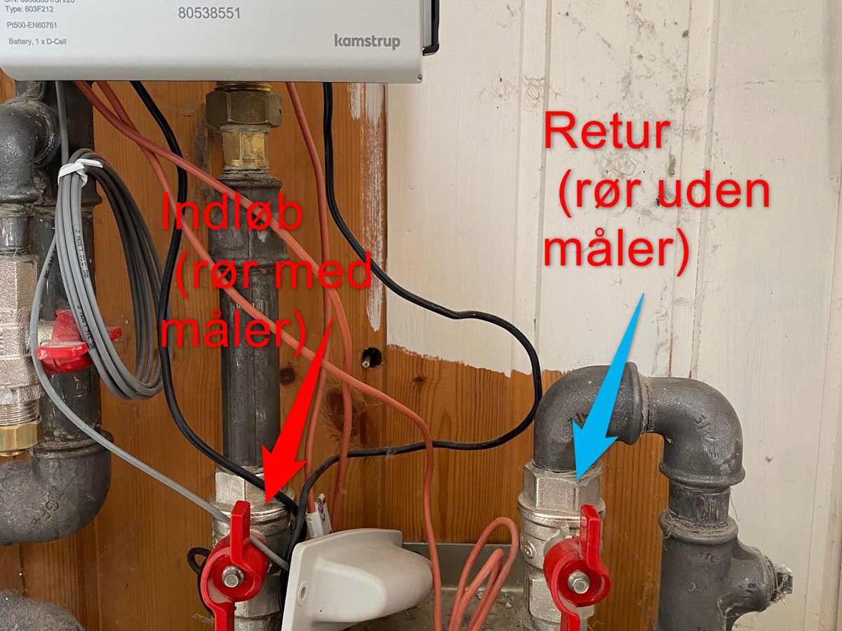 Der hvor din varmemåler sidder, løber det varme vand også ind og ud af huset.